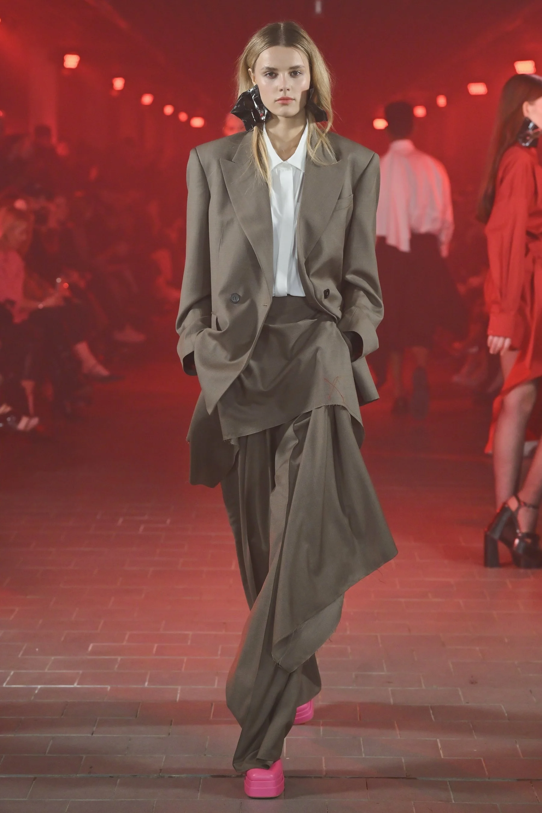 Amidst the captivating realm of Michael Kováčik's "YEAR X" collection, suits and shirts emerged as the epitome of timeless elegance and refined style. With his keen eye for detail, Kováčik reimagined traditional suits, infusing them with an air of modernity and a touch of architectural finesse. Exquisite tailoring and precise cuts transformed each suit into a work of art, exuding a sense of power and confidence. Crisp collars, precise stitching, and innovative fabric combinations were a testament to the designer's dedication to creating garments that exude elegance from every angle. While paying homage to classic silhouettes, Kováčik masterfully introduced elements of surprise, such as oversized lapels or unexpected drapery, elevating the overall aesthetic and adding a touch of avant-garde allure.