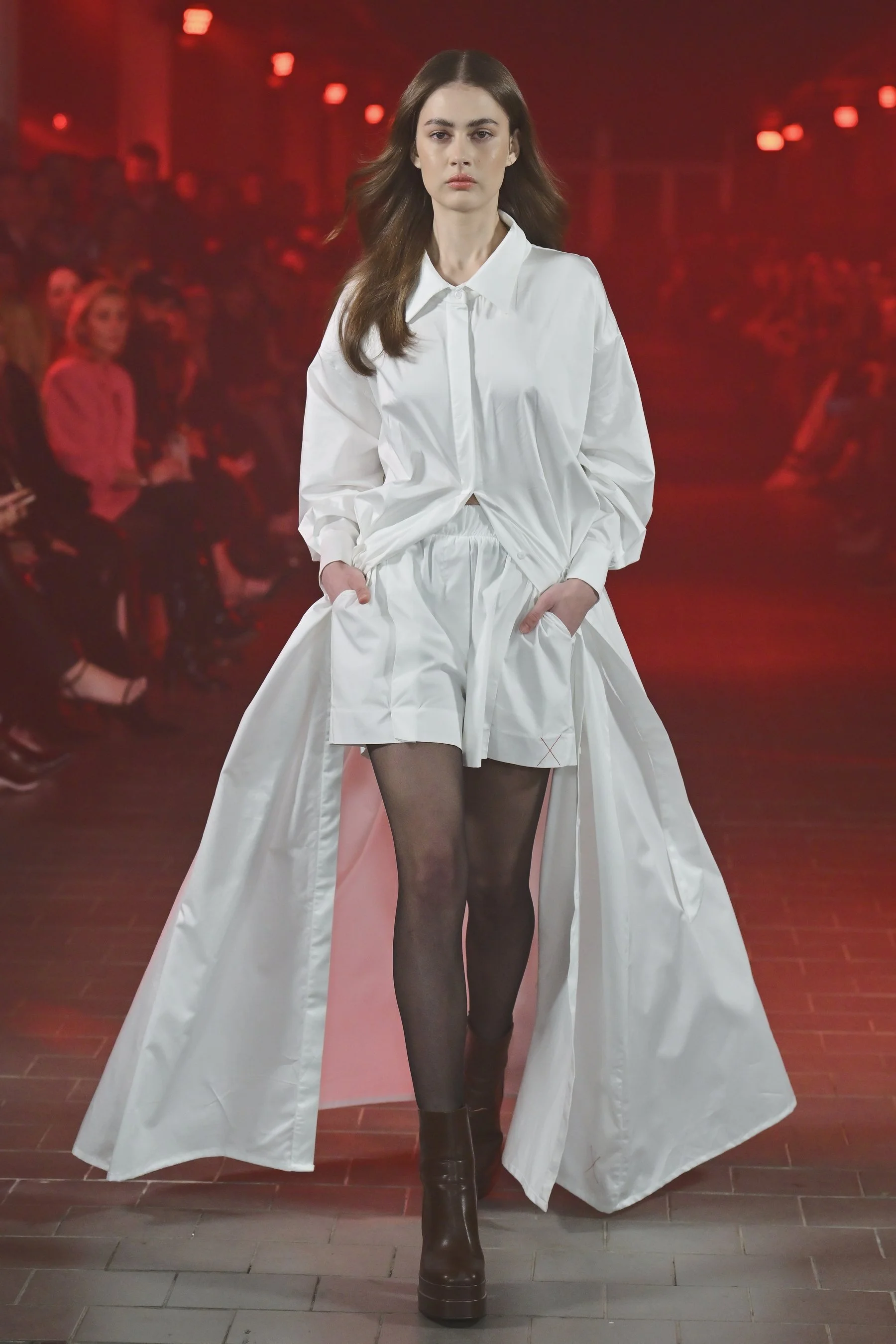 The color palette chosen for "YEAR X" reflects Kováčik's vision of simplicity and sophistication. Predominantly featuring shades of red, black, and white, the collection is punctuated with the infusion of neutral tones, adding depth and versatility. This harmonious blend of colors enhances the timeless appeal of the garments, making them wearable and adaptable for various occasions. Each hue was thoughtfully chosen to evoke emotion and capture the essence of the collection's celebration of simplicity and everyday existence.